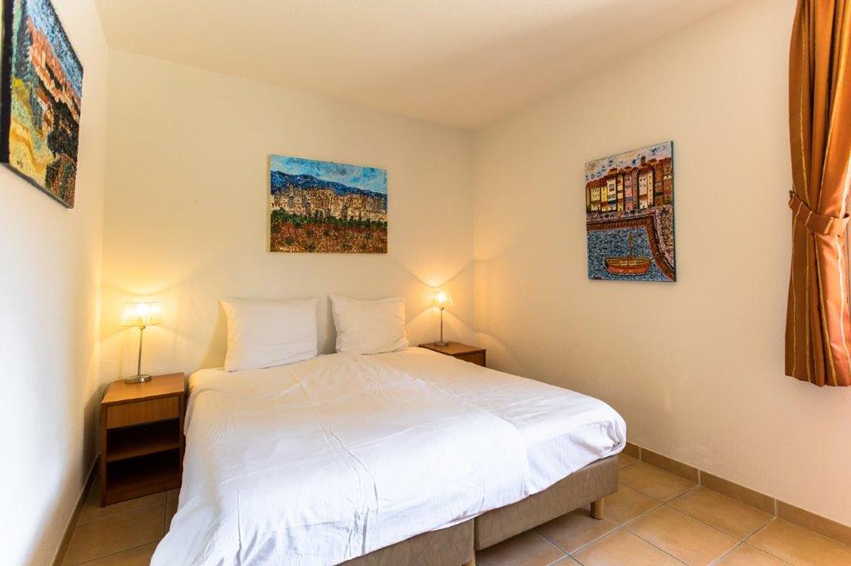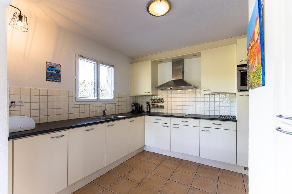 De villa Hirondelle (de Zwaluw) heeft op de begane grond 2 slaapkamers, er tussenin een badkamer met bad waarin een douche, wastafel, in de kleine hal een separaat toilet, daarna hal met garderobe, royale moderne en luxe keuken,  bergkast; woon-/eetkamer - zie foto's, 1x airco op de master bedroom.