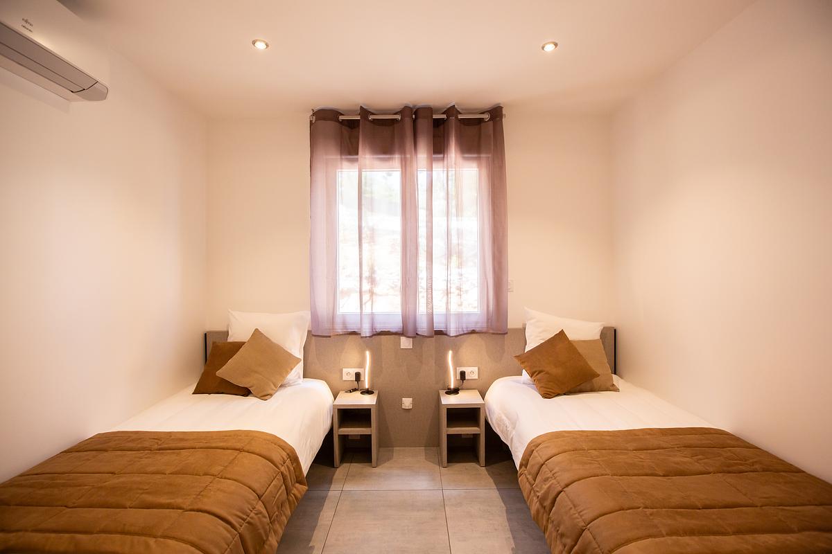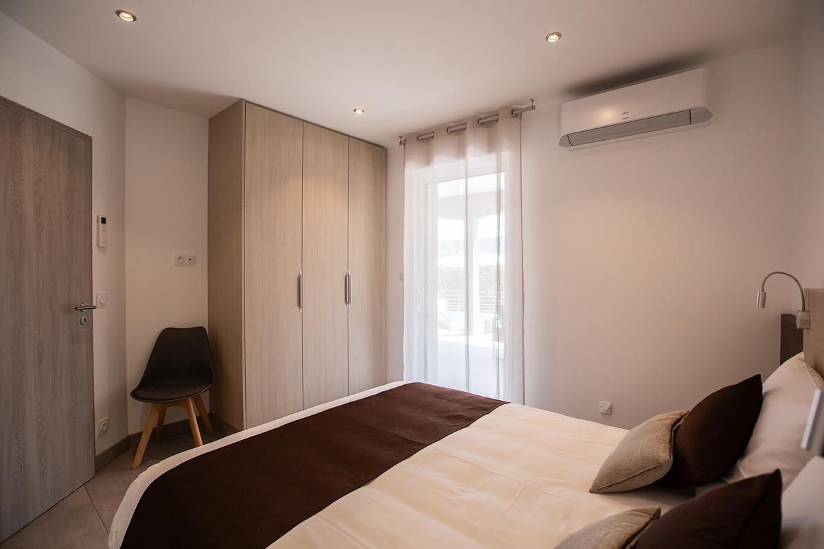 Elke slaapkamer is voorzien van airconditioning, een kledingkast en opbergruimte.