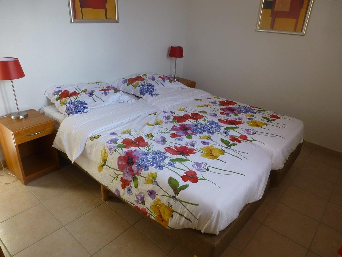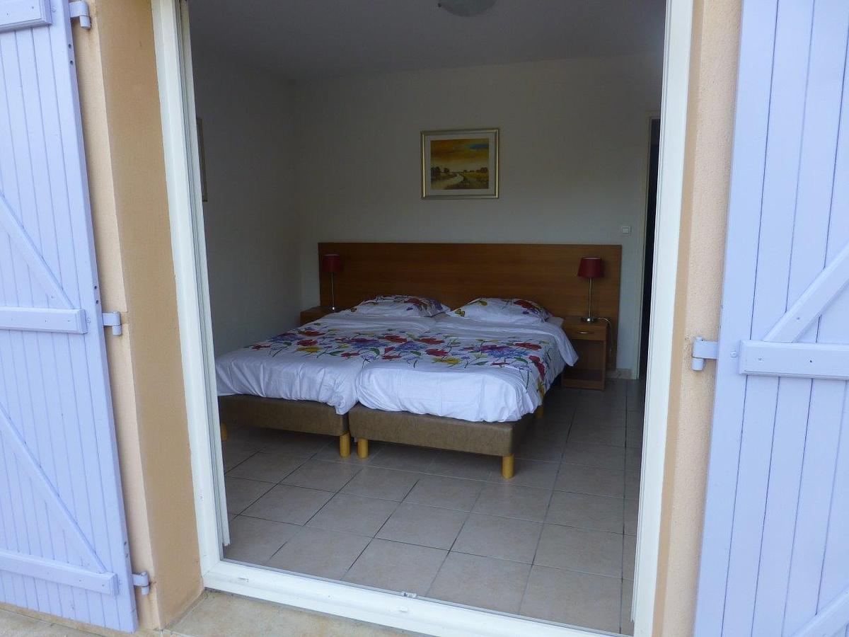 Vanuit de hal bereikt u de 2 slaapkamers (w.v. 1 master bedroom met 2 bedden van 90 x 210 cm en openslaande deuren naar de achtertuin met zwembad); badkamer met bad en douche, wastafel en toilet; 2e slaapkamer met 2x een bed van 80x200 cm. Ook deze slaapkamer heeft openslaande deuren maar naar de voortuin. De slaapkamers hebben airconditioning.