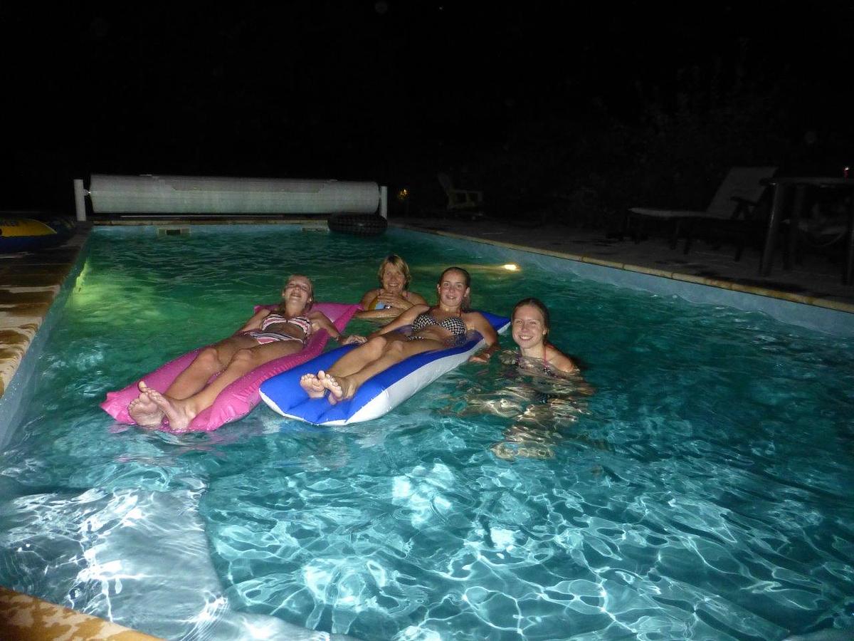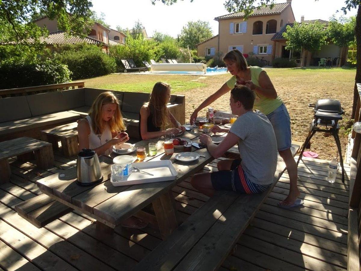 Brood halen is in het hoogseizoen na bestelling de dag ervoor mogelijk bij de RECEPTIE en anders rijdt u even naar de bakker, net buiten het villapark. Er is een elektrische WEBER bbq aanwezig; evenals diverse tuinsets, parasols. Het privé zwembad van 9,5 x 4.10 meter (van 0.80 tot 2.00 meter diep) heeft een zgn. Romaanse inlooptrap, heeft verlichting en wordt afgesloten met een elektrisch rolluik. Het water is in de periode 20 april tot en met 28 september verwarmd. Er is een solar buitendouche.